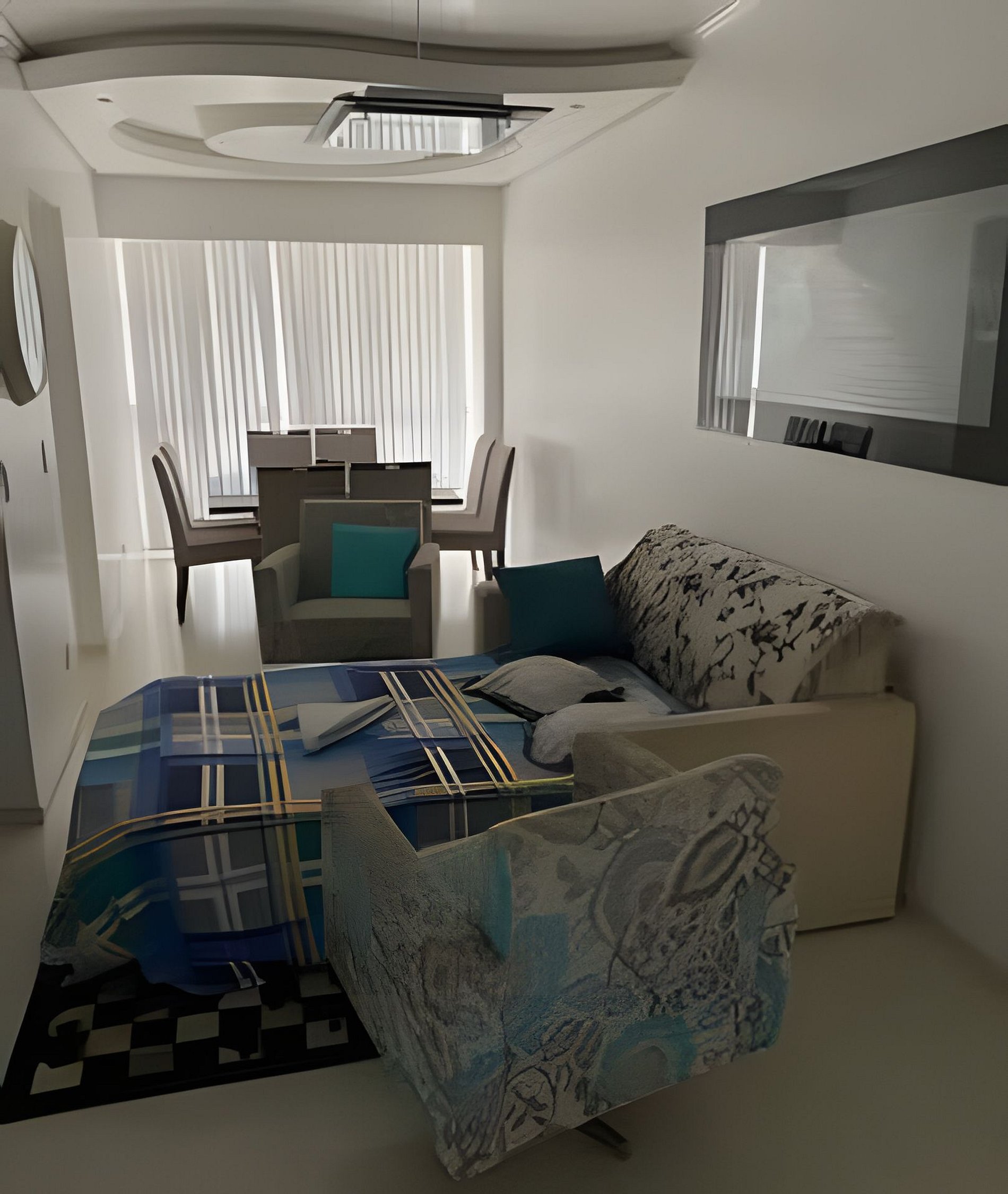 Na sala ha opção do sofá que se transforma em cama e acomoda também um adulto.